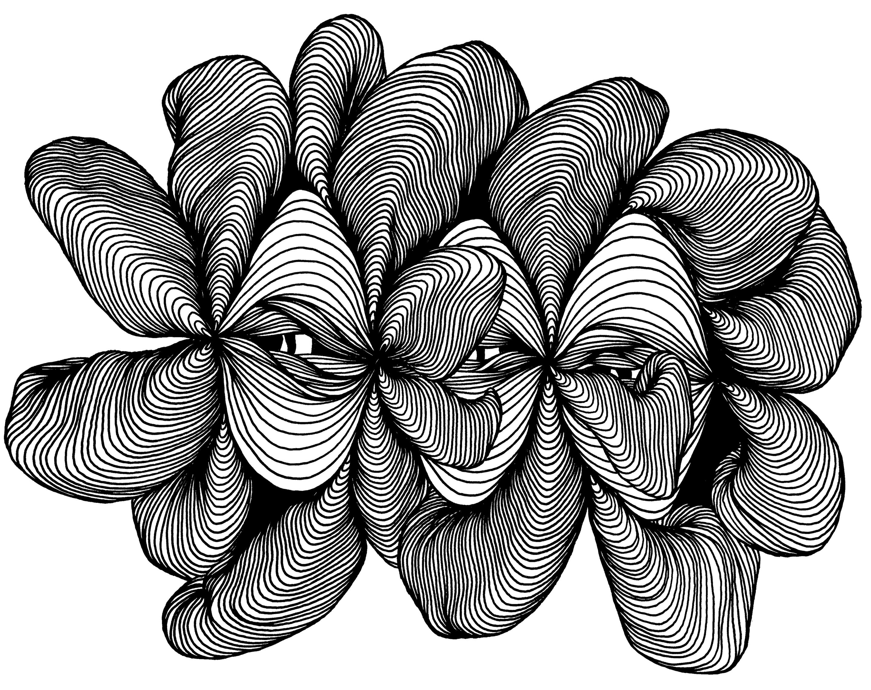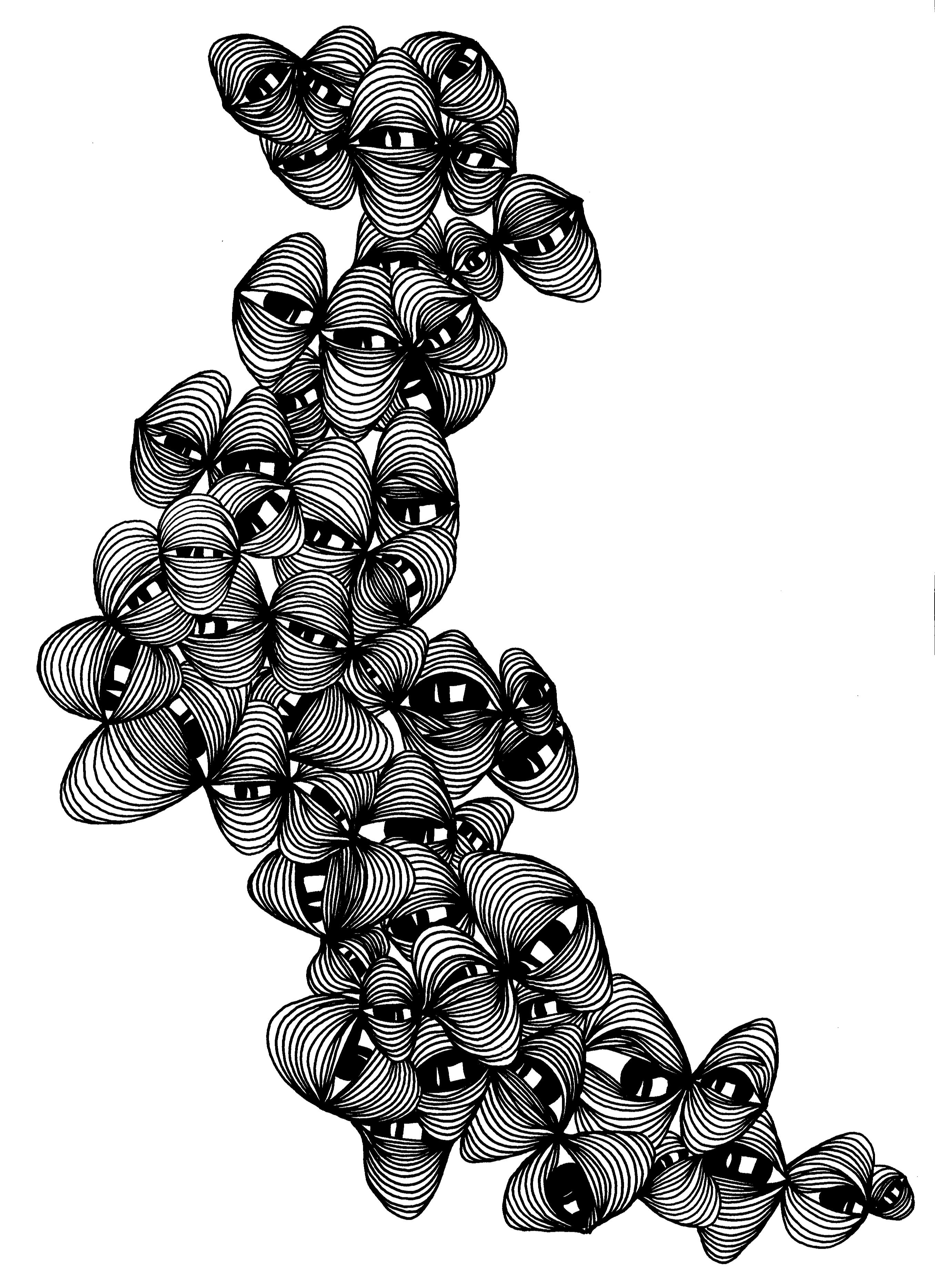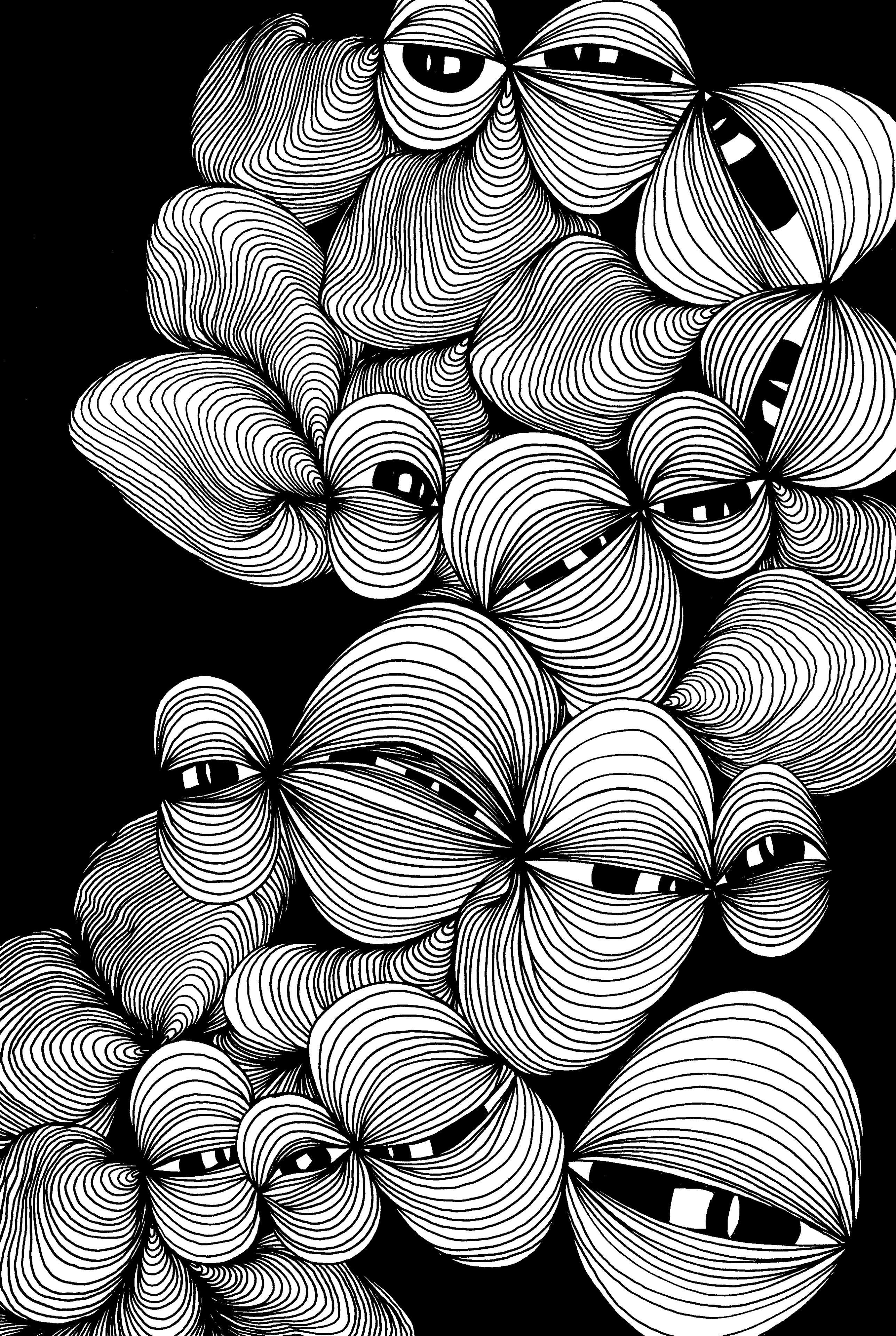 In der Serie Form of Eyes entstehen handgezeichnete Linienkompositionen, in denen organische Linien ineinanderfließen und Formen entstehen, die sich erst im Blick des Betrachters offenbaren.