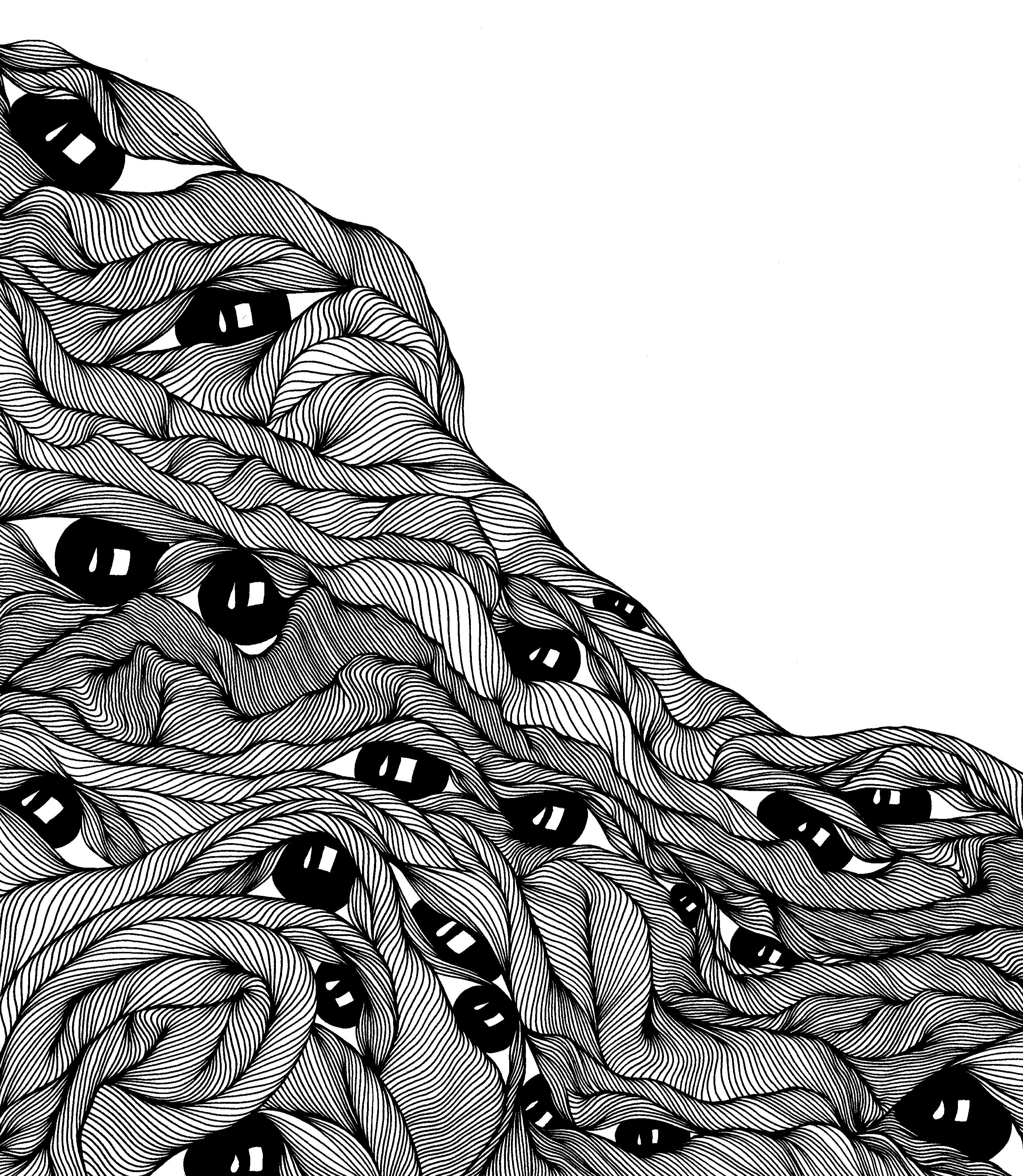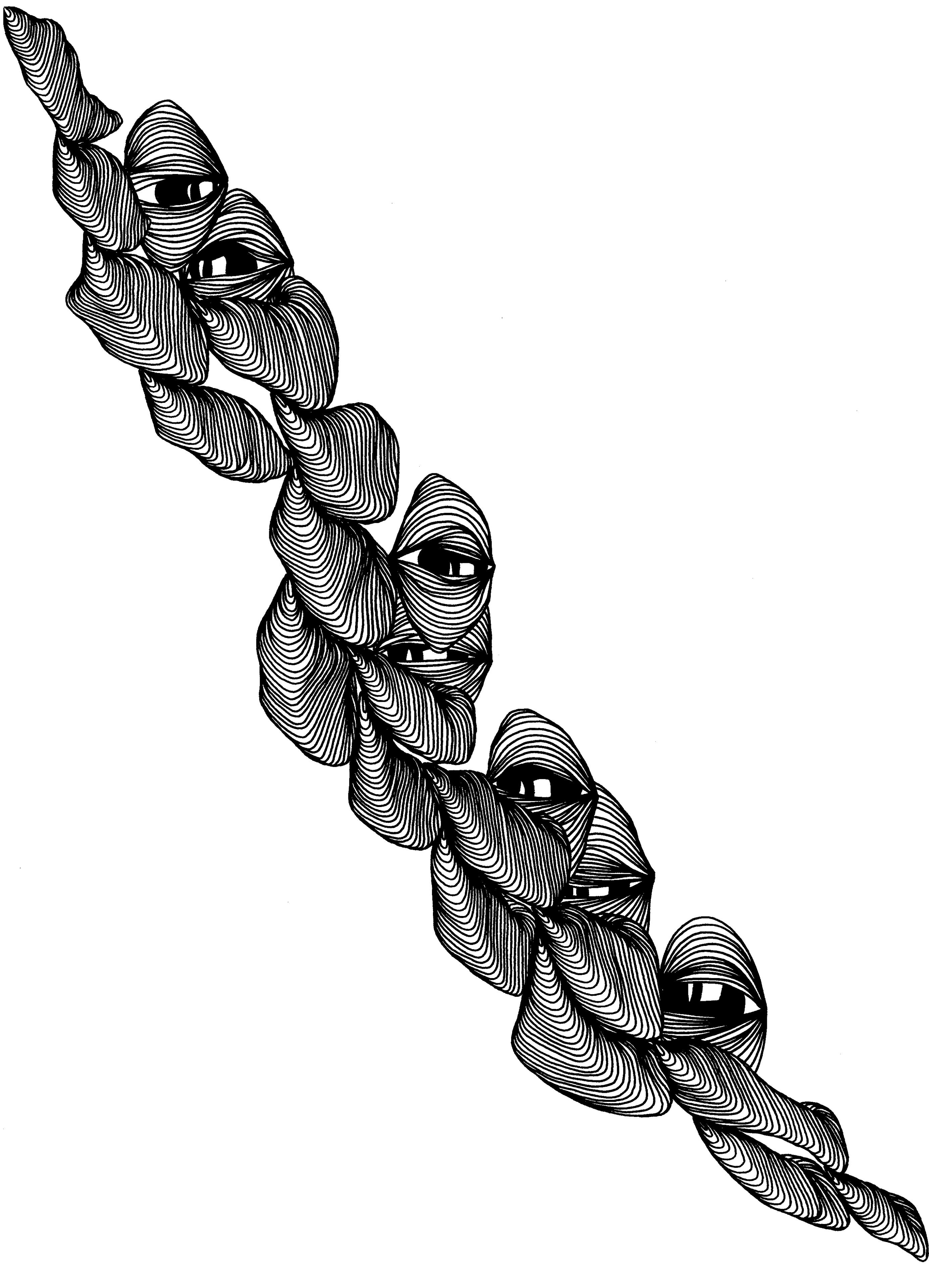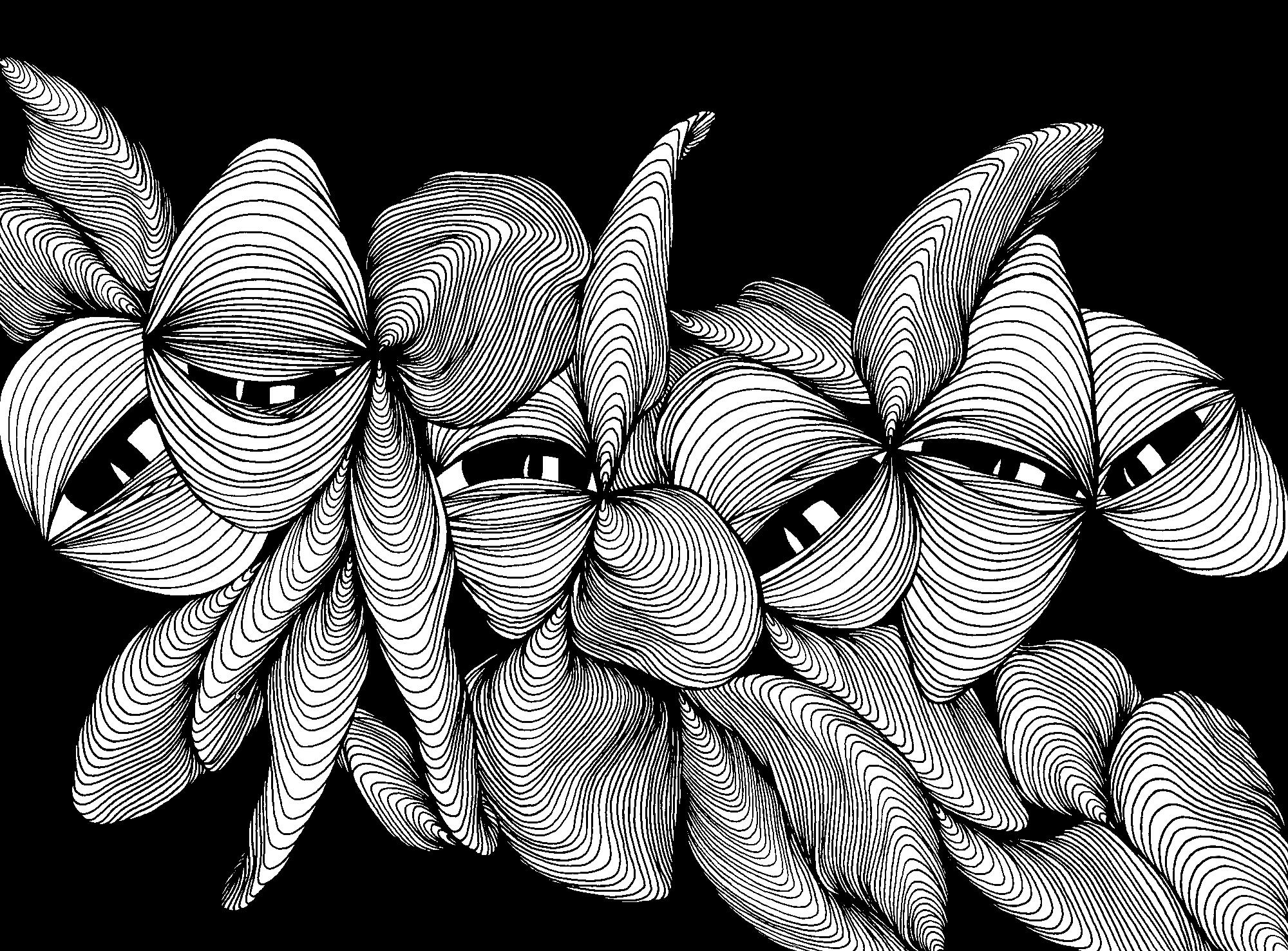 In der Serie Form of Eyes entstehen handgezeichnete Linienkompositionen, in denen organische Linien ineinanderfließen und Formen entstehen, die sich erst im Blick des Betrachters offenbaren.